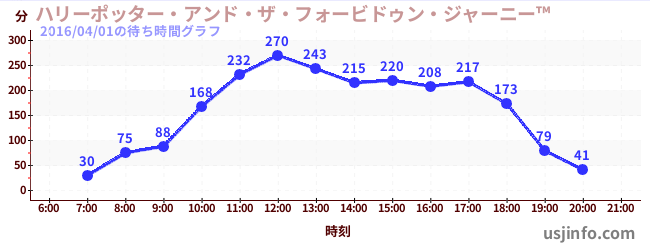 • ハリーポッター・アンド・ザ・フォービドゥン・ジャーニー™$B$N(B2016年04月01日の待ち時間