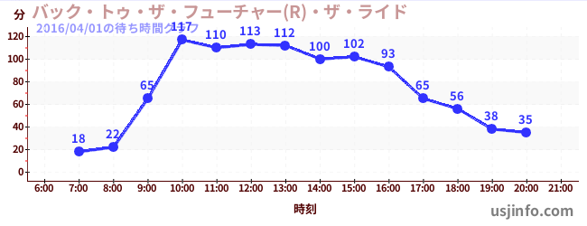 • バック・トゥ・ザ・フューチャー(R)・ザ・ライド$B$N(B2016年04月01日の待ち時間