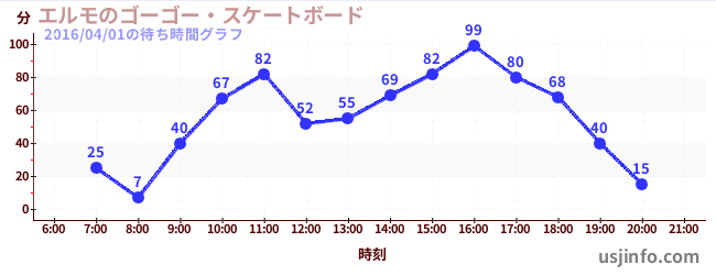 • エルモのゴーゴー・スケートボード$B$N(B2016年04月01日の待ち時間