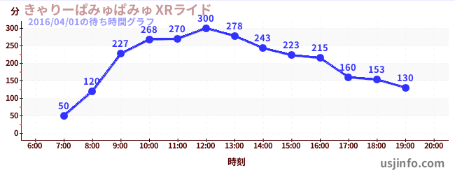• きゃりーぱみゅぱみゅ XRライド$B$N(B2016年04月01日の待ち時間