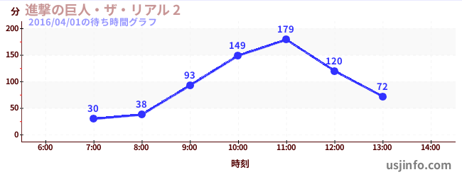• 進撃の巨人・ザ・リアル 2$B$N(B2016年04月01日の待ち時間