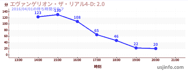 • エヴァンゲリオン・ザ・リアル4-D: 2.0$B$N(B2016年04月01日の待ち時間