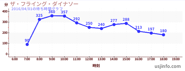 • ザ・フライング・ダイナソー$B$N(B2016年04月01日の待ち時間