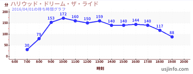 • ハリウッド・ドリーム・ザ・ライド$B$N(B2016年04月01日の待ち時間