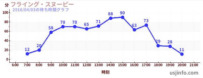 • フライング・スヌーピー$B$N(B2016年04月03日の待ち時間
