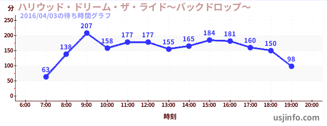• ハリウッド・ドリーム・ザ・ライド〜バックドロップ〜$B$N(B2016年04月03日の待ち時間