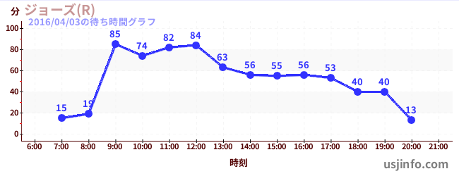 • ジョーズ(R)$B$N(B2016年04月03日の待ち時間