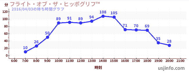 • フライト・オブ・ザ・ヒッポグリフ™$B$N(B2016年04月03日の待ち時間