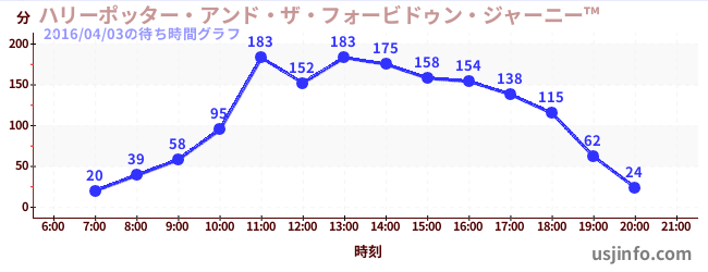 • ハリーポッター・アンド・ザ・フォービドゥン・ジャーニー™$B$N(B2016年04月03日の待ち時間