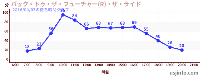 • バック・トゥ・ザ・フューチャー(R)・ザ・ライド$B$N(B2016年04月03日の待ち時間