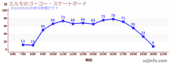 • エルモのゴーゴー・スケートボード$B$N(B2016年04月03日の待ち時間
