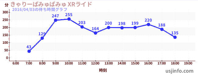• きゃりーぱみゅぱみゅ XRライド$B$N(B2016年04月03日の待ち時間