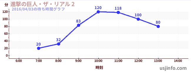 • 進撃の巨人・ザ・リアル 2$B$N(B2016年04月03日の待ち時間