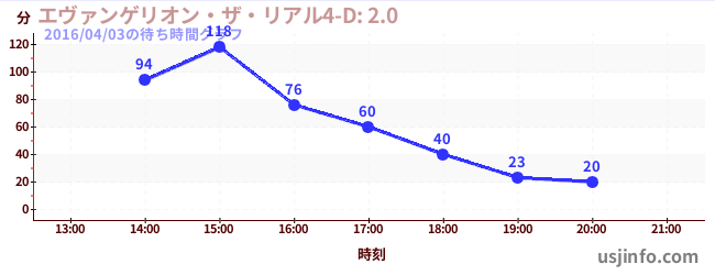 • エヴァンゲリオン・ザ・リアル4-D: 2.0$B$N(B2016年04月03日の待ち時間