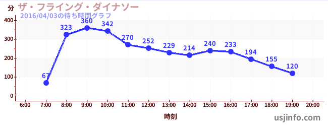• ザ・フライング・ダイナソー$B$N(B2016年04月03日の待ち時間
