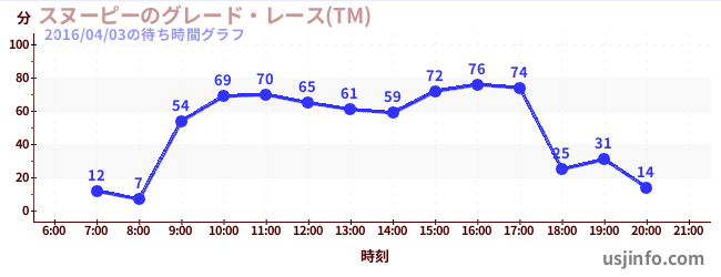 • スヌーピーのグレード・レース(TM)$B$N(B2016年04月03日の待ち時間