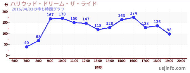 • ハリウッド・ドリーム・ザ・ライド$B$N(B2016年04月03日の待ち時間