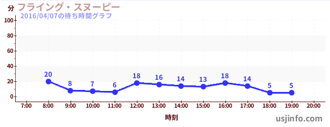 • フライング・スヌーピー$B$N(B2016年04月07日の待ち時間
