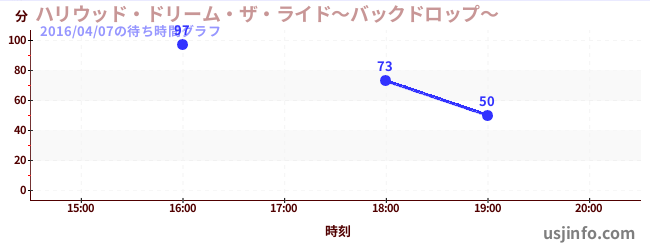 • ハリウッド・ドリーム・ザ・ライド〜バックドロップ〜$B$N(B2016年04月07日の待ち時間