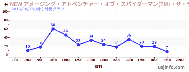 • NEW アメージング・アドベンチャー・オブ・スパイダーマン(TM)・ザ・ライド 4K3D$B$N(B2016年04月07日の待ち時間