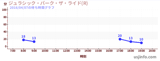• ジュラシック・パーク・ザ・ライド(R)$B$N(B2016年04月07日の待ち時間