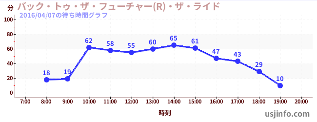 • バック・トゥ・ザ・フューチャー(R)・ザ・ライド$B$N(B2016年04月07日の待ち時間