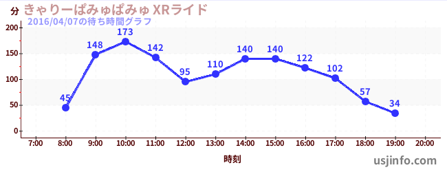 • きゃりーぱみゅぱみゅ XRライド$B$N(B2016年04月07日の待ち時間