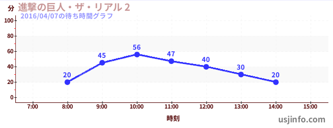 • 進撃の巨人・ザ・リアル 2$B$N(B2016年04月07日の待ち時間