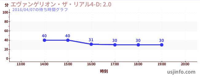 • エヴァンゲリオン・ザ・リアル4-D: 2.0$B$N(B2016年04月07日の待ち時間