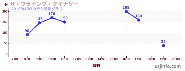 • ザ・フライング・ダイナソー$B$N(B2016年04月07日の待ち時間