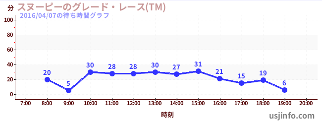 • スヌーピーのグレード・レース(TM)$B$N(B2016年04月07日の待ち時間
