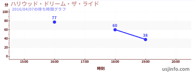 • ハリウッド・ドリーム・ザ・ライド$B$N(B2016年04月07日の待ち時間