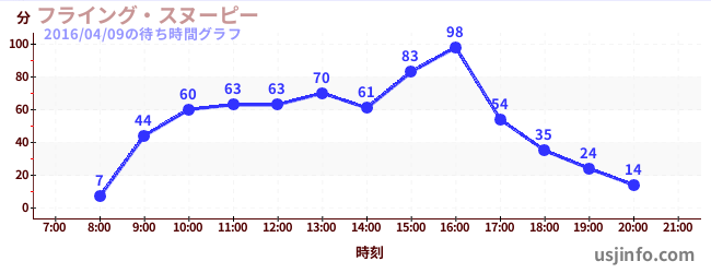 • フライング・スヌーピー$B$N(B2016年04月09日の待ち時間