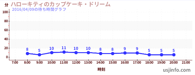 • ハローキティのカップケーキ・ドリーム$B$N(B2016年04月09日の待ち時間