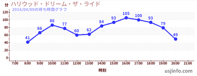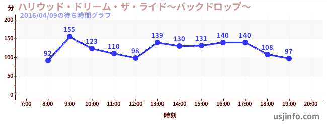 • ハリウッド・ドリーム・ザ・ライド〜バックドロップ〜$B$N(B2016年04月09日の待ち時間