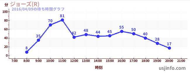 • ジョーズ(R)$B$N(B2016年04月09日の待ち時間