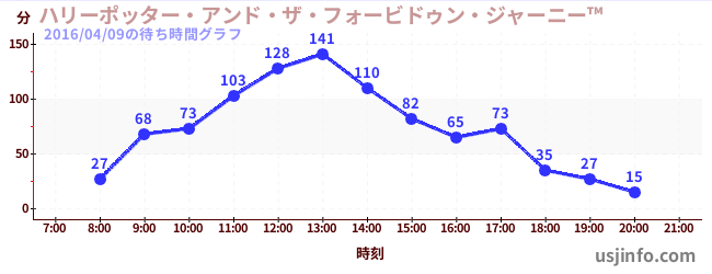 • ハリーポッター・アンド・ザ・フォービドゥン・ジャーニー™$B$N(B2016年04月09日の待ち時間