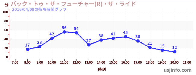 • バック・トゥ・ザ・フューチャー(R)・ザ・ライド$B$N(B2016年04月09日の待ち時間