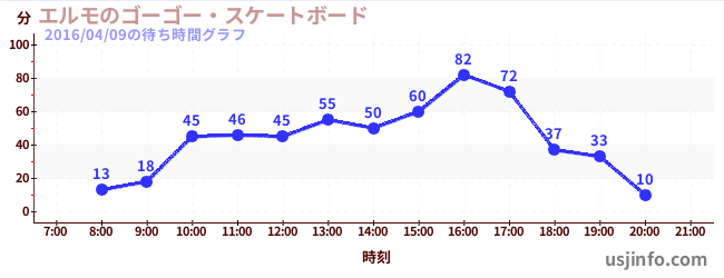 • エルモのゴーゴー・スケートボード$B$N(B2016年04月09日の待ち時間