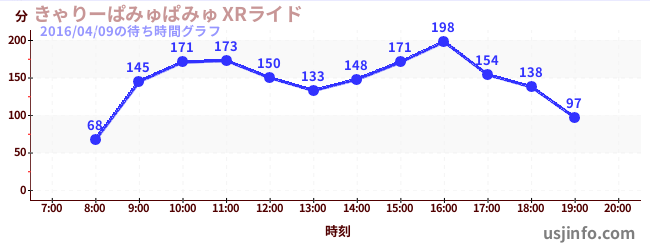 • きゃりーぱみゅぱみゅ XRライド$B$N(B2016年04月09日の待ち時間