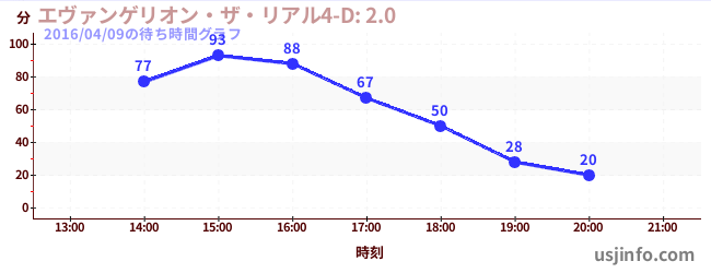 • エヴァンゲリオン・ザ・リアル4-D: 2.0$B$N(B2016年04月09日の待ち時間