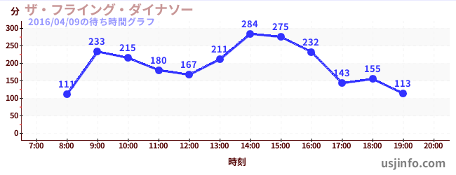 • ザ・フライング・ダイナソー$B$N(B2016年04月09日の待ち時間
