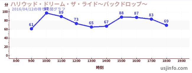 • ハリウッド・ドリーム・ザ・ライド〜バックドロップ〜$B$N(B2016年04月12日の待ち時間