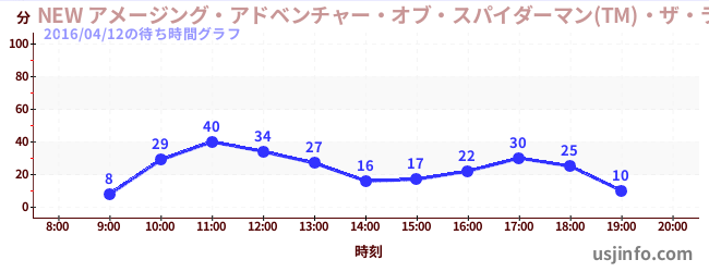 • NEW アメージング・アドベンチャー・オブ・スパイダーマン(TM)・ザ・ライド 4K3D$B$N(B2016年04月12日の待ち時間