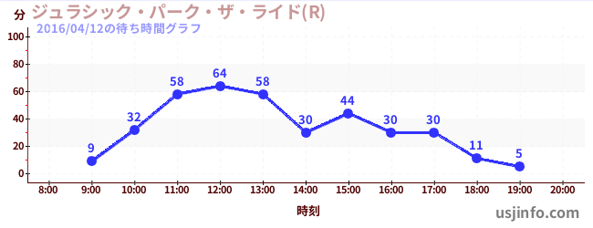 • ジュラシック・パーク・ザ・ライド(R)$B$N(B2016年04月12日の待ち時間