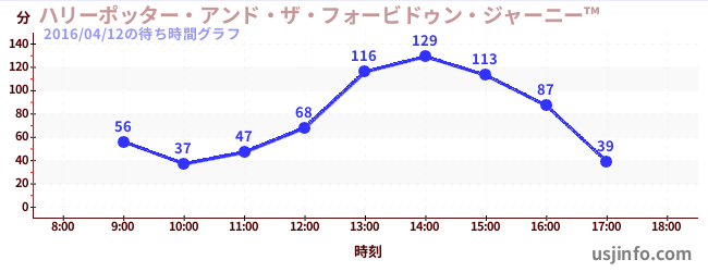 • ハリーポッター・アンド・ザ・フォービドゥン・ジャーニー™$B$N(B2016年04月12日の待ち時間