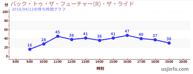 • バック・トゥ・ザ・フューチャー(R)・ザ・ライド$B$N(B2016年04月12日の待ち時間
