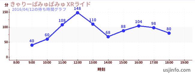 • きゃりーぱみゅぱみゅ XRライド$B$N(B2016年04月12日の待ち時間