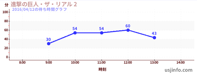 • 進撃の巨人・ザ・リアル 2$B$N(B2016年04月12日の待ち時間