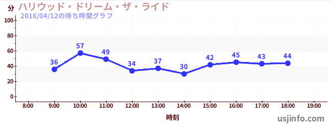 • ハリウッド・ドリーム・ザ・ライド$B$N(B2016年04月12日の待ち時間
